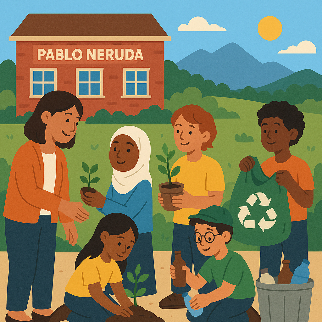 La Escuela Pablo Neruda además promueve valores como la responsabilidad, amor, respeto, solidaridad, aceptación y tolerancia.